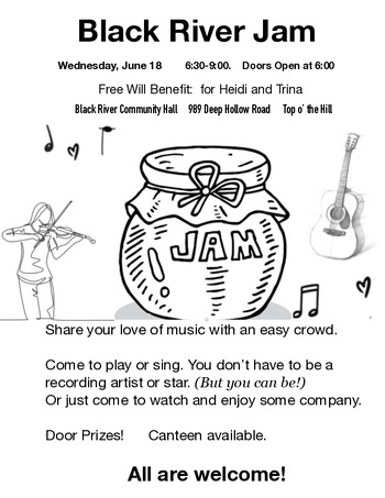 We haven't "jammed" in a long time! This one is for the benefit of two community women laid low by circumstance, one from a truly awful dog bite, one by cancer. Bring your performance talent (Your don't have to be a star!) and friends to listen and enjoy! Door Donation and Door Prizes.