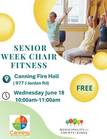 Join Municipality of Kings Staff for a free Chair Fitness Class, where an instructor will provide a low intensity and fun workout.