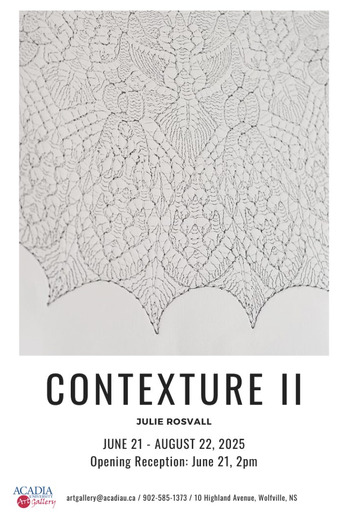 The Acadia University Art Gallery is pleased to present Contexture II, a solo exhibition by Gaspereau Valley based artist Julie Rosvall.
