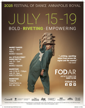 One of FODAR's most popular events. Your chance to see all of the Festival of Dance Annapolis Royal (FODAR) artists performing. Many of these works will be seen for the first time. No Reservations required but the seats fill up quickly!
