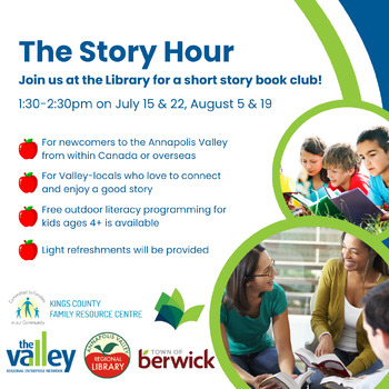*This club is offered by the Valley Regional Enterprise Network's Annapolis Valley Welcome Network, the Kings County Family Resource Centre, the Annapolis Valley Regional Library, Town of Berwick, and United for Literacy.