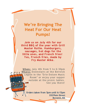 Join us for our third BBQ of the year with Grill Master Rollie. Hamburgers, sausages, hot dogs for the little ones, and French fries!
