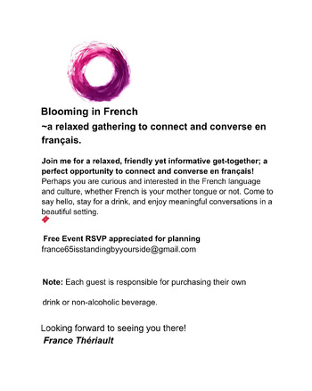 Perhaps you are curious and interested in the French language and culture, whether French is your mother tongue or not. Come to say hello, stay for a drink, and enjoy meaningful conversations in a beautiful setting.