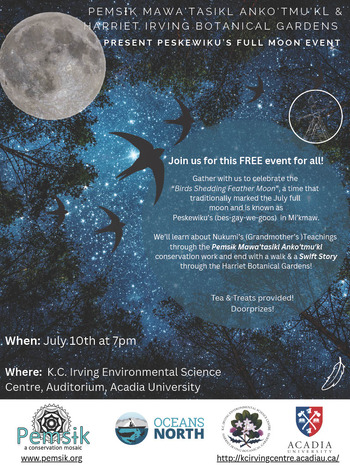 Gather with us to celebrate the 'Birds Shedding Feather Moon', a time that traditionally marked the July full moon and is known as Peskewiku's (bes-gay-we-goos) in Mi'kmaw.