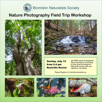 Would you like to learn more techniques to take great photographs in nature? Join Garry Conway from the Blomidon Naturalists Society for a nature photography workshop in the Kentville Ravine. Bring your phone or camera and tripod if you have one and remember to bring some water! Please register for this event.
