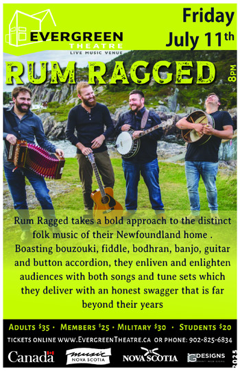 Rum Ragged takes a bold approach to the distinct folk music of their Newfoundland home. Boasting bouzouki, fiddle, bodhran, banjo, guitar and button accordion, they enliven and enlighten audiences with both songs and tune sets, which they deliver with an honest swagger that is far beyond their years.