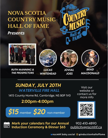 The Nova Scotia Country Music Hall of Fame fundraising concert featuring Ruth Manning & the Prospectors, Lucas Whitehead, Brad MacDonald and the Jovial Joes.
