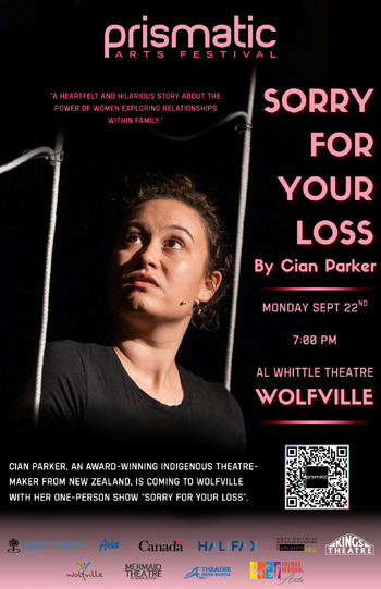 Come join Prismatic for a one time opportunity to see "Sorry For Your Loss" by international Maōri (New Zealand) artist in Wolfville!