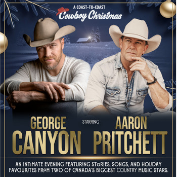 CCMA winners, and beloved Canadian country superstars George Canyon and Aaron Pritchett unite for their coast to coast Cowboy Christmas tour. With countless accolades between them, and over 25 years of hits, the pair will come together to treat fans to some of their own chart topping songs, as well as some all-time favourite Christmas classics. Truly a show not to be missed, in celebration of the Holiday season.