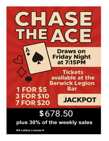 ALL (19+) ARE WELCOME TO PLAY CHASE THE ACE EACH FRIDAY NIGHT. You do not need to be a Legion Member to purchase tickets.