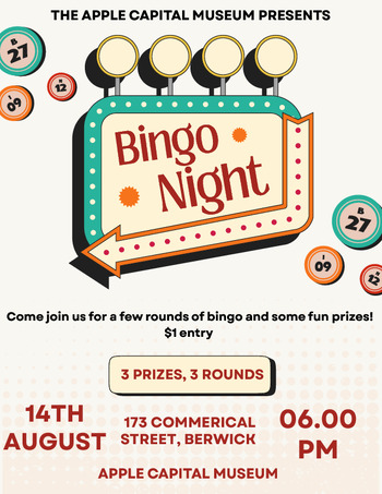 Join us at the Apple Capital Museum for some Bingo! There will be three rounds with three prizes.