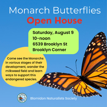 Join the Blomidon Naturalists for our annual Monarch Butterfly day. Visit Larry and Alison Bogan on their property and see the butterflies in all stages of their development, wander the milkweed field and discover new ways to help these amazing creatures and their incredible journey.