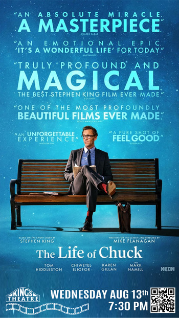 A life-affirming story about three chapters in the life of an ordinary man named Charles Krantz. From childhood to adulthood, Chuck Krantz experiences the wonder of love, the heartbreak of loss, and the multitudes contained in all of us. Based on the Stephen King novella
