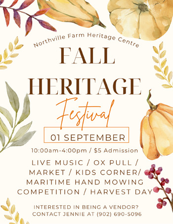 Mark your calendars! The annual Fall Heritage Festival at the Northville Farm Heritage Centre is back, and it’s a day you won’t want to miss. Celebrate the season and our rural roots with a full lineup of family-friendly activities.