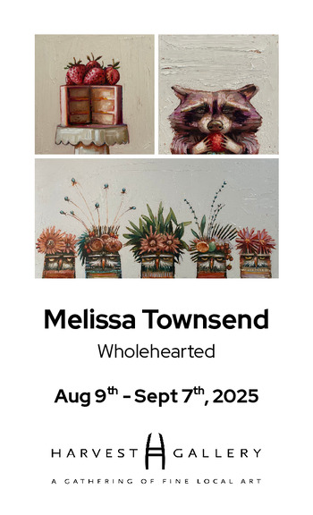 Harvest Gallery is pleased to present Wholehearted, a new solo exhibition by acclaimed Nova Scotia artist Melissa Townsend, on view from August 9 to September 7, 2025. An opening reception will take place on Saturday, August 9, from 1-3 PM in the gallery's lower level. The public is warmly invited to attend, meet the artist, and enjoy light refreshment.