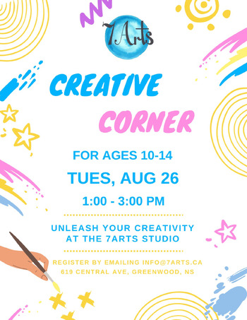 Join us at the 7Arts studio this summer to unleash your creativity. This program is designed for ages 10-14 with the option to participate in a pre-selected craft or explore a variety of art media and techniques to create your own project. The cost is pay what you can. As space is limited, registration is required.