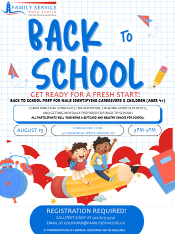 Male Identifying caregivers and their children are invited to join us for some useful information on getting ready for back to school, healthy snack making and supper!