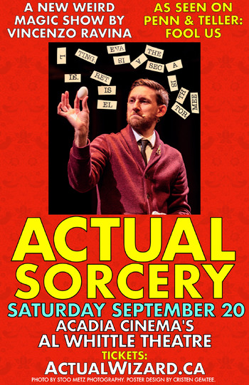 Award-winning actual wizard and magician Vincenzo Ravina brings his magic to Wolfville's Al Whittle Theatre for the second time! This show is for you, specifically and in particular.