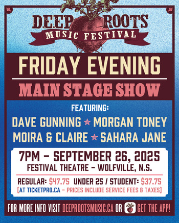 Sahara Jane blends folk and world music influences with soulful vocals and skilled musicianship. Dave Gunning is a celebrated singer-songwriter known for his heartfelt storytelling and award-winning folk songs. Moira & Claire captivate audiences with their harmonies and fresh approach to traditional and contemporary music. Morgan Toney, a rising star, fuses Mi’kmaq roots with energetic fiddle and powerful vocals, creating a sound that bridges cultures and generations.