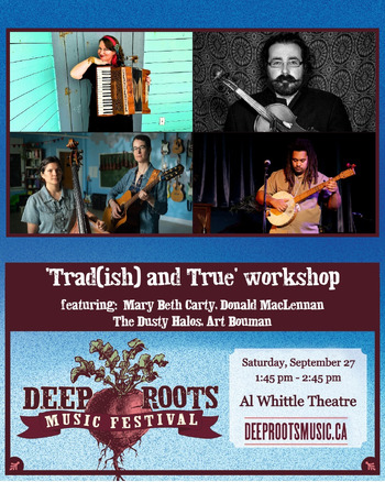 From deep roots to fresh branches, this genre-blending session brings together The Dusty Halos, Koromanti and The North Star, Mary Beth Carty, and Donald MacLennan for an afternoon of musical cross-pollination. Expect tradition with a twist - fiddle tunes, folk harmonies, global grooves, and original songs that honour the old while reaching for the new.