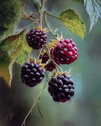 It’s the time of year for harvest, and what a bounty we get here in the valley. Every year I go foraging for blackberries (or brambles as they’re called in Scotland!), they’re like little gems hanging in the foliage. I have to say though, this year because it’s been so hot I won’t be foraging; I’d rather leave them for the animals and birds who need them a lot more than me. So this year, it’s just painted brambles for me!