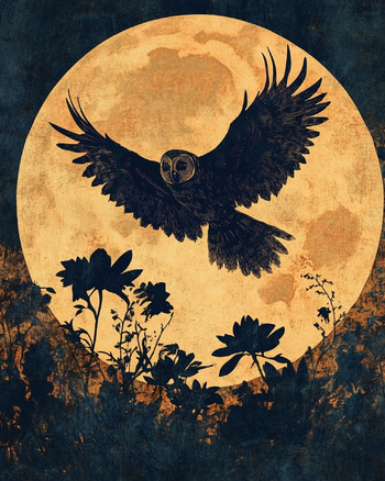 This is one of those paintings you’re going to want to hang on your wall when you’re done! A perfectly magical painting for Hallowe’en – a shadowy owl flying in front of a full moon.
