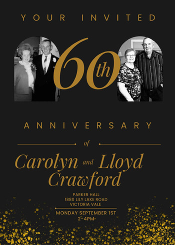 Drop in with best wishes for Lloyd and Carolyn Crawford to celebrate their 60th Anniversary.