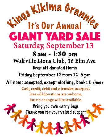 it's our annual GIANT yard sale!! Cash, credit, e-transfers, free will donations Bring your own bags