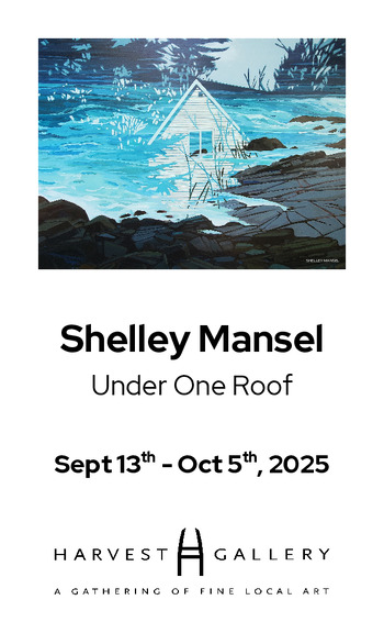 Harvest Gallery is pleased to present Under One Roof, a new engaging exhibition by Nova Scotia based artist Shelley Mansel, on view from September 13th to October 5th, 2025. An opening reception will take place on Saturday, September 13th, from 1–3 PM on the gallery’s lower level. Join us in celebrating this new body of work meet the artist and enjoy light refreshments.