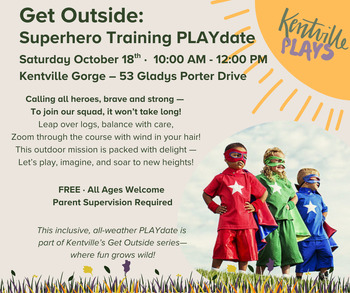 Join us for Kentville’s Get Outside: PLAYdates—a series of playful Saturday mornings designed to get families outside, active, and connected. Each week features a new theme, with activities for all ages to enjoy!