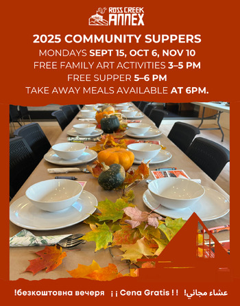 We are celebrating community at the Annex with a community supper open to all (donations welcome but not required). This is part of a series of monthly dinners bringing people together at the Annex.