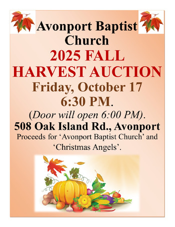Items may include home decor, crafts, baked goods, preserves, etc. If you would like to donate an item(s) please contact [email protected]. Proceeds for 'Avonport Baptist Church' and 'Christmas Angels'.