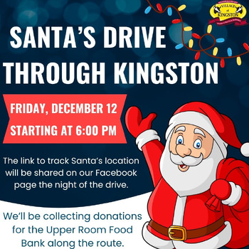 Santa's visiting the Village of Kingston! Wave at him from the comfort of your own home or at the end of your driveway.