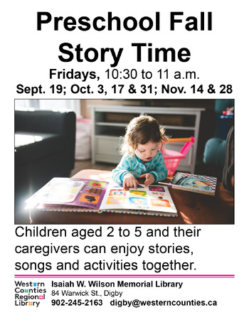 Children five and under and caregivers can enjoy stories, songs and activities.