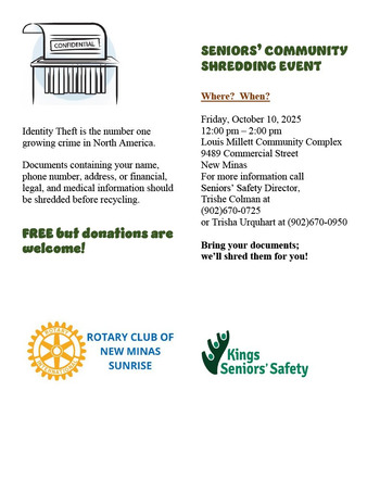 Seniors, Safely dispose of old documents and protect yourself from identity theft. It’s free, secure, and donations are welcome to help keep this program going.