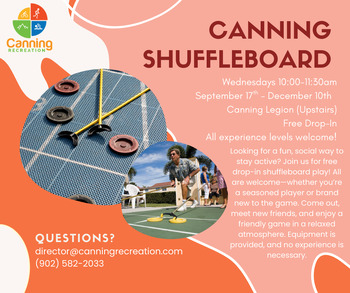 Looking for a fun, social way to stay active? Join us for free drop-in shuffleboard play! All are welcome—whether you’re a seasoned player or brand new to the game. Come out, meet new friends, and enjoy a friendly game in a relaxed atmosphere. Equipment is provided, and no experience is necessary.