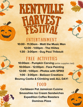 Check out https://kentville.ca/PumpkinPeopleFestival for all the information for the harvest festival and Pumpkin People Festival.
