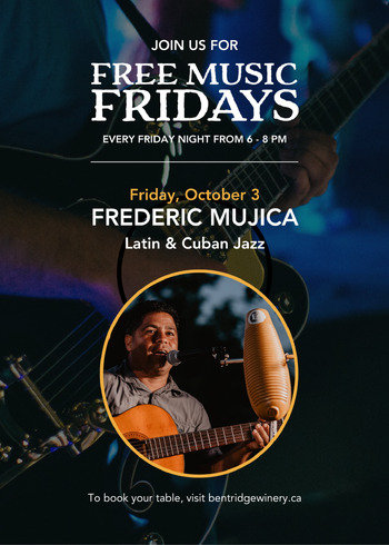 Frederic Mujica, “The Lost Tourist,” is a Cuban-born Latin musician now based in Kentville, NS. A singer since age 8 from Sanctis Spiritus, Cuba, he has performed at top resorts for international audiences. Since arriving in Canada in 2009, he’s built a devoted fan base in the Annapolis Valley with his engaging performances.