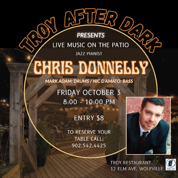 Troy After Dark presents jazz pianist Chris Donnelly! Joined by Mark Adam on drums and Nic D'Amato on bass.