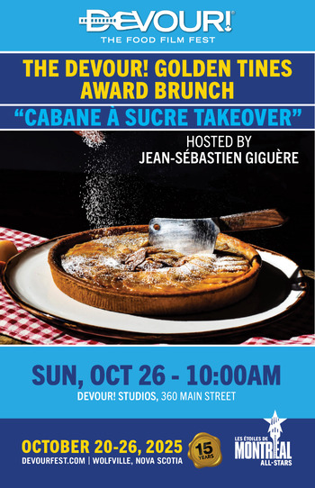 Experience a unique blend of festive celebration as Chef Jean-Sébastien Giguère of La Cabane du Coureur turns our brunch on its head with a delightful cabane à sucre takeover! Indulge in a maple-infused breakfast of champions while we honour remarkable filmmakers with the prestigious Golden Tine Awards in five categories: Best Animation, Best Short Documentary, Best Short Drama, Best Feature Documentary, and Best Feature Drama. The winners of these awards are selected by our esteemed jury members, including venerated Montréal-based food writer Lesley Chesterman, the Chair of Destination BC Ingrid Jarrett, and Nova Scotia-based filmmaker Scott Simpson.