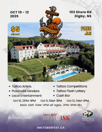 We invite you to join us this October for Southwest Nova Scotia's first-ever body arts convention at a stunning coastal chateau where you can get tattooed by some of the Maritimes' most reputable artists, take in live music, browse handcrafted work from local vendors, and more. We’re just getting started, join the first wave!