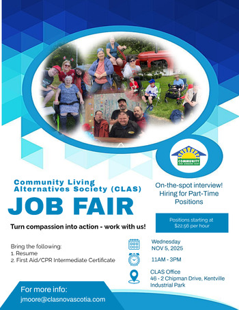 Community Living Alternatives Society (CLAS) is inviting compassionate individuals to join their team at a Job Fair.