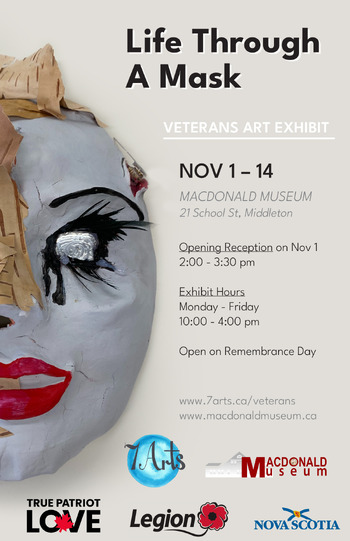 Opening reception for Life Through a Mask veterans art exhibit, in collaboration with the Macdonald Museum's annual Poppy Display featuring over 2,000 handmade poppies.