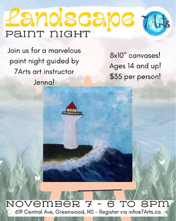Join artist Jenna as she guides us through a fun paint night. During this acrylic paint night, you'll create your own 8x10" landscape masterpiece. This class is for ages 14+. eserve your spot by email.