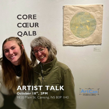 Artist Talk by Basma Kavanagh and Monique Silver. Their exhibition "CORE / CŒUR / QALB" continues until November 1st. Original drawings, releif prints and textile installations.