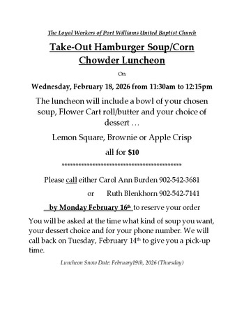 Order by February 16thth, we will call with pick up time on February 17th To order call Carol Ann 902-542-3681