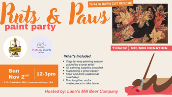 Enjoy an afternoon of painting while supporting the folks and cats at Thalia Barn Cat Rescue. A step by step painting session with all materials included.