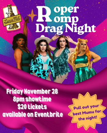 Our first Roper Romp is going to be extra special with a special show by DRAG QUEENS. Brooke Rivers, Trinity Foxx and 2 special guests, Queera Bang and Proshenna