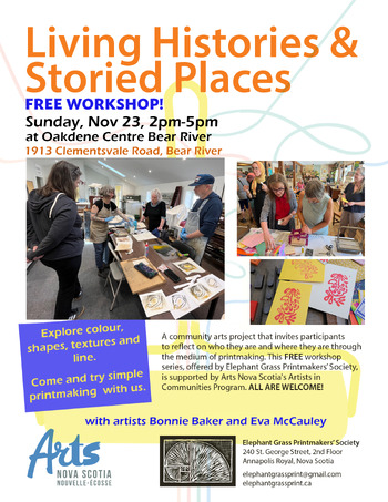 Through our Living Histories & Storied Places project, EGPS is finding ways for members of diverse communities to come together, share experiences, and shape them into art by offering free workshops and building new connections. Living Histories & Storied Places is supported by Arts Nova Scotia's Artists in Communities program.