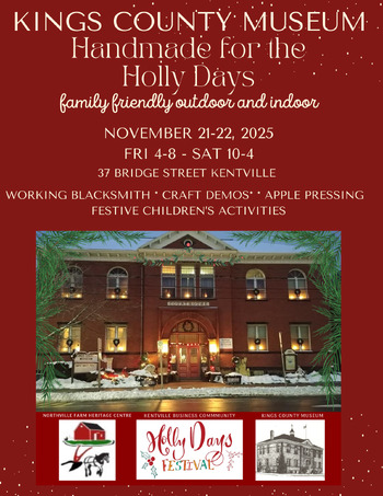 Dreaming of an old-fashioned Christmas? Join us and our friends from the Northville Farm Heritage Centre to celebrate the season by saying, “Out with the new and in with the old!” As thoughts turn to the holiday season, join us in celebrating all things homespun, traditional, and timeless. Traditional crafts, blacksmithing, festive children’s activities, and more can be enjoyed with family and friends. We invite you to embrace the time-honoured art of creating through the eyes and hands of Kings County’s crafters and artisans. ’Tis the time and the season - and now you have a reason to visit the Kings County Museum.